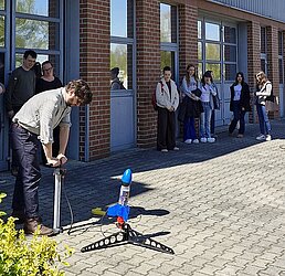 Zum krönenden Abschluss ging es nach draußen, wo drei Wasserraketen gestartet wurden, was für große Begeisterung sorgte.
