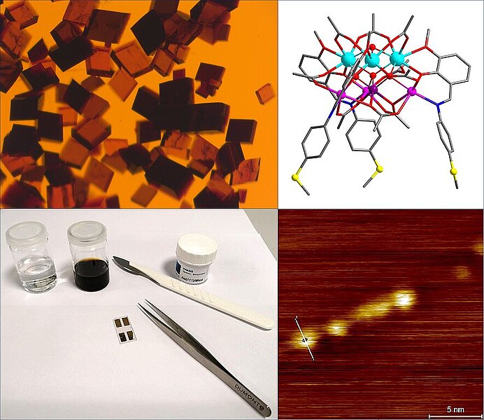 These multimetallic-based molecular thin films can potentially be converted into new types of metal oxide thin films with yet unexplored electronic characteristics. Investigations of the conductivity and the switching of both the molecular and the new metal oxide thin films are the focus of studies in the subgroup “Molecular oxide switching materials”.