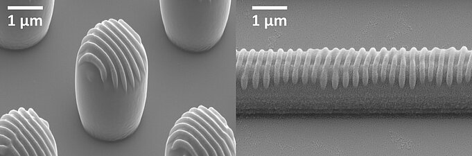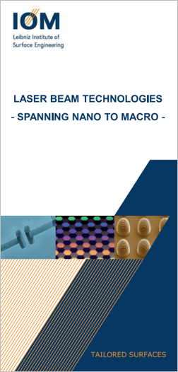 Micro and nano structures are become increasingly important for technical applications and in everyday’s life, e.g. for clean surfaces, illumination technology, safety and in reducing friction and wear. Research at the IOM focuses on the production of precise surfaces, preferably by material ablation or etching (glass, plastics and metals) with pulsed laser radiation. The high accuracy needed for applications in the field of optics requires the development of methods and processes that enable precise depth adjustment, minimal roughness, and low material damage. This involves developments at the intersection of physical and chemical processes that are laser-guided and thus enable the computer-accurate writing of patterns, structures and shapes with sizes ranging from 1 µm to 20 cm, thus bridging the gap to industrial applications.