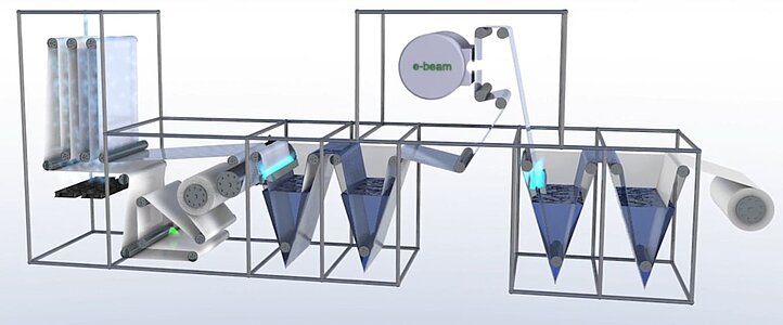 Membranfunktionalisierung im Pilotmaßstab: Rolle-zu-Rolle-Elektronenstrahlsystem mit Inline-Kontaktwinkelbestimmung